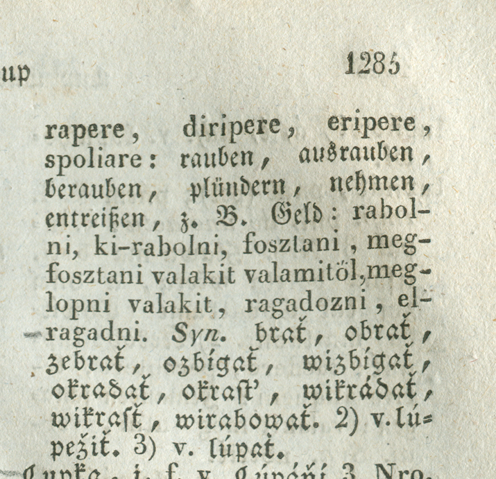lúpiť2 nedok. okrádať, oberať niekoho o niečo, zbíjať: Lúpil, gde mahól (Rochovce ROŽ); Ež na Hvarke zbojníci lúpa̋ (Kameňany REV); Oni ludzí lúpá (Bošáca TRČ); Ona muža barz lupi, veľo peňeźi premarňi (Dl. Lúka BAR)